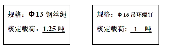 2. 每個箱子內放張吊索具配置清單,注明所配吊索具種類、規(guī)格、數(shù)量,按最少配置進行放置。吊索具箱內分門別類按照所標規(guī)格進行存放并貼上規(guī)格標簽,標簽注明許用拉力。 如: